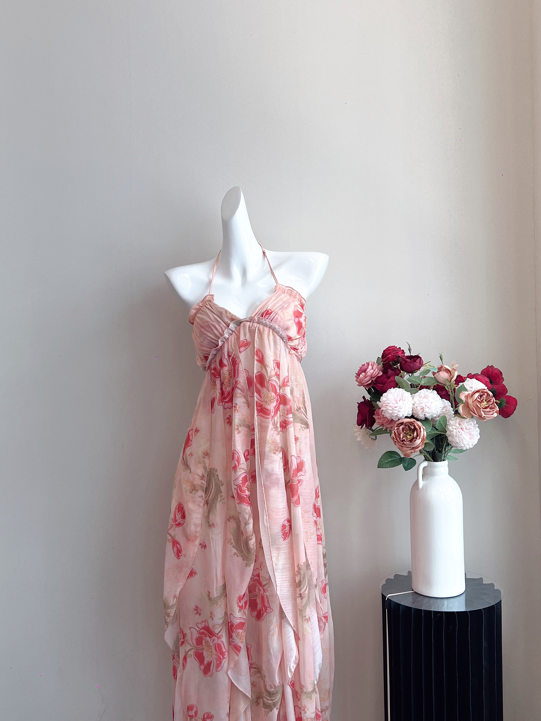 SHE'S仙女系氛围感碎花吊带设计感度假长裙