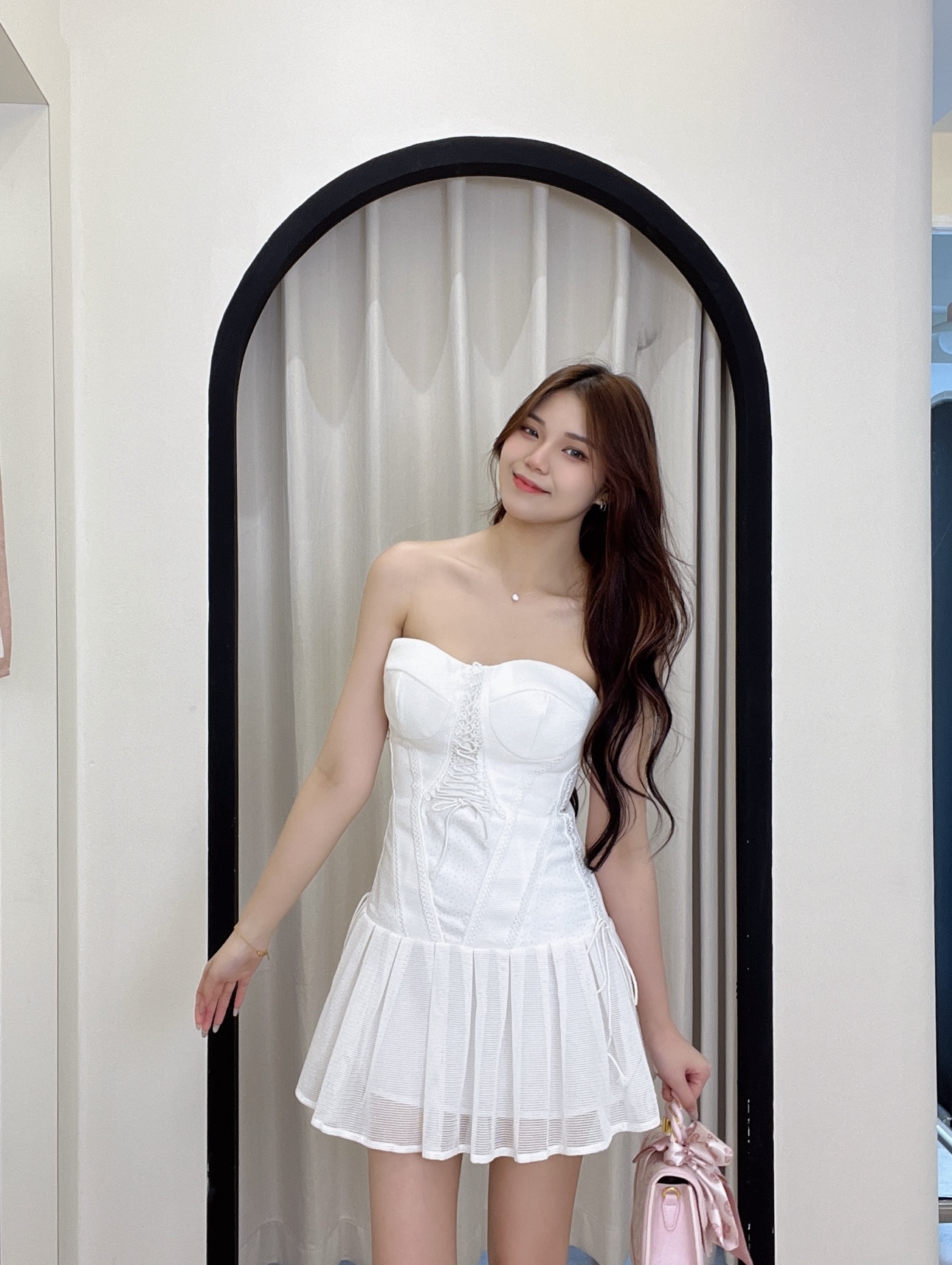 SHE'S法式甜美蕾丝设计感抹胸A字短裙